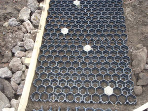 - The JakMat Enviro is then filled with the aggregate, a GAP20 with high binder clay, or similar locally available material, and this is then compacted. A further 50ml (compacted) layer is put on top of the mat.